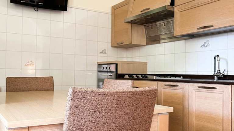 Die Villa bietet drei klimatisierte Schlafzimmer sowie fünf Badezimmer, die mit Bidet, Dusche und Haartrockner ausgestattet sind. Eine gut ausgestattete Küche ist mit einem Kühlschrank, Geschirrspüler, Ofen, Kaffeemaschine und Wasserkocher eingerichtet.