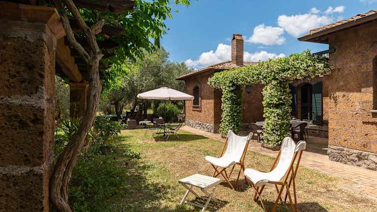 Das Casale di Befania in Vetralla bietet Ihnen einen erholsamen Aufenthalt inmitten der Natur. Genießen Sie den saisonalen Außenpool und entspannen Sie in den komfortablen Unterkünften mit kostenlosem WLAN. Das Ferienhaus verfügt über eine voll ausgestattete Küche, einen gemütlichen Sitzbereich und ein eigenes Bad. Der Garten lädt zum Verweilen und Entspannen ein. Die Umgebung bietet zudem viele interessante Sehenswürdigkeiten, wie Vallelunga und die Villa Lante. Der Flughafen Rom-Ciampino ist ebenfalls gut erreichbar.