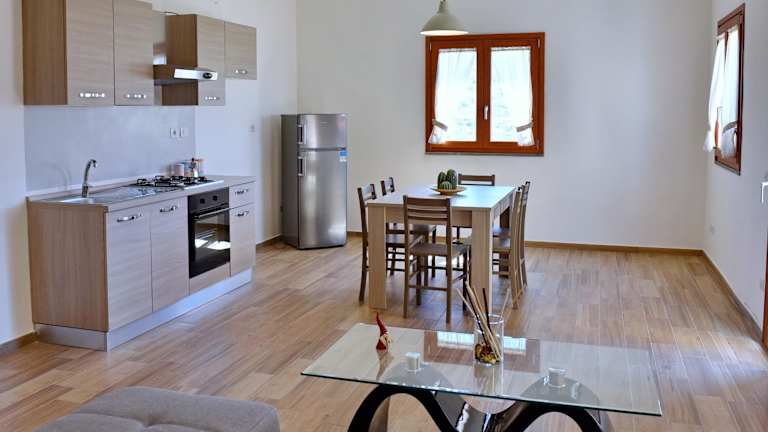 Das Apartment im Hotel Il Ciliegio ist geräumig und bietet alles, was Sie für einen komfortablen Aufenthalt benötigen. Mit zwei Schlafzimmern, einem Wohnzimmer und einer voll ausgestatteten Küche haben Sie ausreichend Platz, um sich wie zu Hause zu fühlen. Der Balkon bietet einen atemberaubenden Blick auf das Meer, während das moderne Badezimmer mit Bidet und Dusche für zusätzlichen Komfort sorgt.