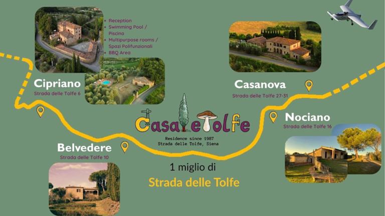 Die CasaLeTolfe Residence bietet verschiedene Übernachtungsmöglichkeiten in Siena. Zu den Annehmlichkeiten zählen eine Veranda / Patio, Gartenblick, ein Sitzbereich, ein Flachbild-TV und eine voll ausgestattete Küche mit Kühlschrank und Ofen. Einige Einheiten umfassen eine Terrasse oder einen Balkon mit Stadt- oder Poolblick. Des Weiteren stehen ein Businesscenter, kostenloses WLAN und ein kostenloser Privatparkplatz zur Verfügung.