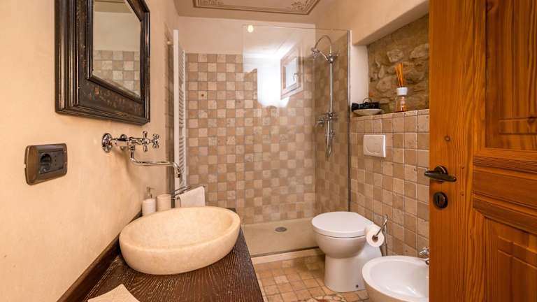 Das Ferienhaus bietet ein Wohnzimmer mit einem Flachbild-TV, eine gut ausgestattete Küche sowie insgesamt drei Badezimmer, die mit Bidet und Dusche ausgestattet sind. Handtücher und Bettwäsche werden bereitgestellt, und die Ausstattung umfasst auch eine Terrasse.