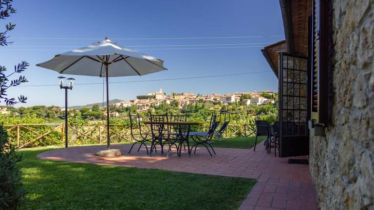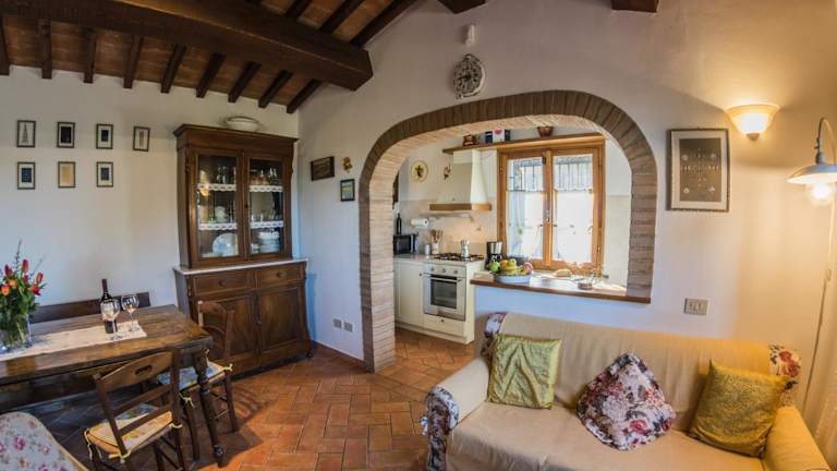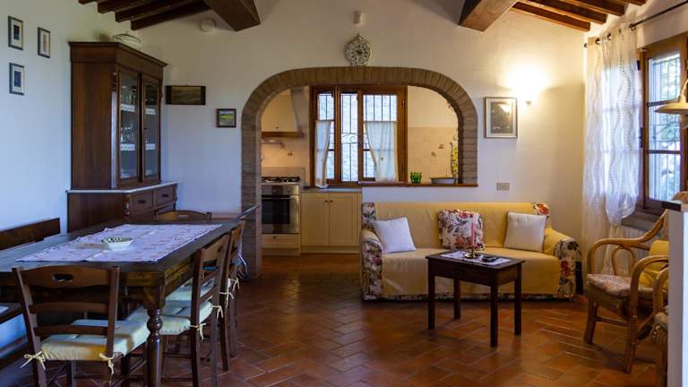 Das Ferienhaus im CASE&COLLINE Buonriposo verfügt über 2 Schlafzimmer und 1 Badezimmer. Es bietet Platz für bis zu 4 Personen und ist mit Bettwäsche und Handtüchern ausgestattet. Im Wohnbereich finden Sie einen Flachbild-Sat-TV und einen Essbereich. Die voll ausgestattete Küche bietet Ihnen die Möglichkeit, Ihre eigenen Mahlzeiten zuzubereiten. Genießen Sie den Komfort einer eigenen Terrasse mit Blick auf die Stadt. Handtücher und Bettwäsche können gegen Aufpreis zur Verfügung gestellt werden.
