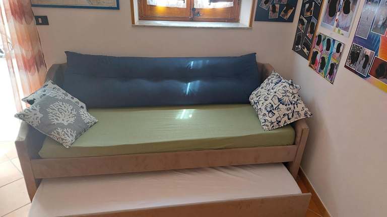 Das Ferienhaus verfügt über ein Schlafzimmer, ein Wohnzimmer sowie eine voll ausgestattete Küche, die mit einem Kühlschrank und einer Kaffeemaschine versehen ist. Es beinhaltet zudem zwei Badezimmer, ausgestattet mit einem Bidet und einer Dusche. Handtücher und Bettwäsche werden bereitgestellt.
