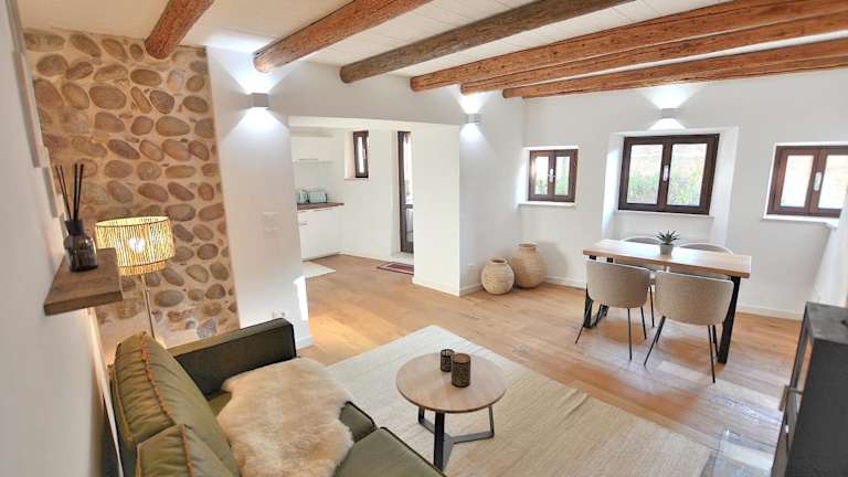 Die Ferienwohnung verfügt über ein Schlafzimmer, ein Wohnzimmer, eine voll ausgestattete Küche mit Kühlschrank und Wasserkocher sowie zwei Badezimmer mit Dusche. Handtücher und Bettwäsche werden bereitgestellt.