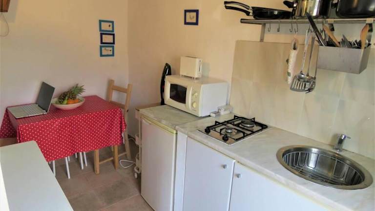 Das Ferienhaus ist mit einer Küche ausgestattet und bietet Platz für Übernachtungen. Handtücher und Bettwäsche sind vorhanden.