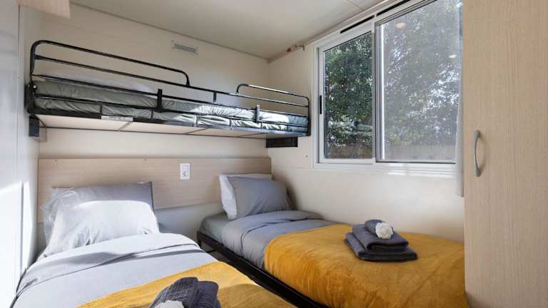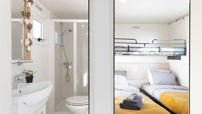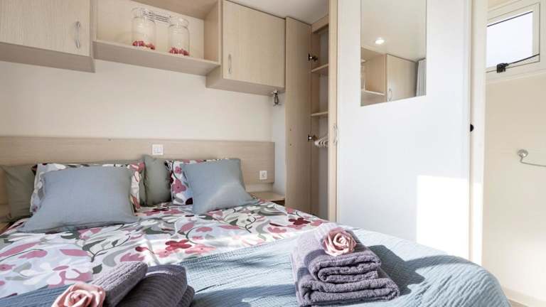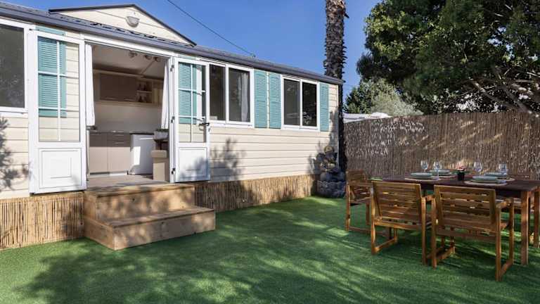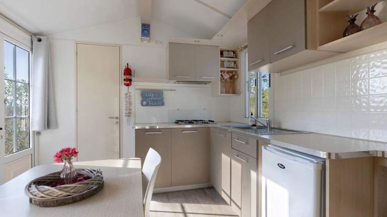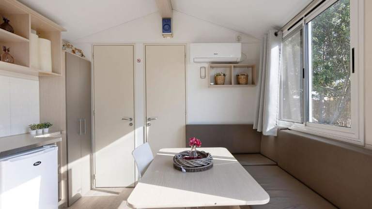 Das Ferienhaus besteht aus 2 Schlafzimmern, einem Wohnzimmer und einer voll ausgestatteten Küche, die einen Kühlschrank sowie eine Kaffeemaschine beinhaltet. Es gibt ein Badezimmer mit Dusche und kostenlosen Pflegeprodukten. Handtücher und Bettwäsche sind in der Unterkunft vorhanden. Die Klimaanlage sorgt für angenehme Temperaturen in den Räumlichkeiten.