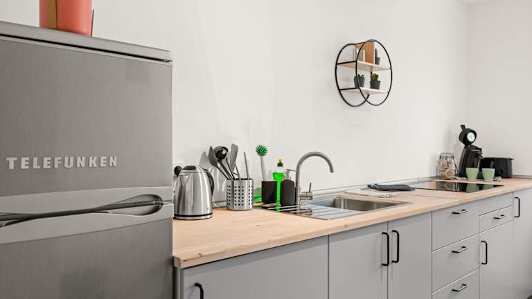 Die Apartments im CASSEL LOFTS - Moderne Wohnung für 3 mit Balkon bieten einen gemütlichen Rückzugsort. Jedes Apartment verfügt über ein Schlafzimmer, ein Wohnzimmer, eine voll ausgestattete Küche mit Kühlschrank und Kaffeemaschine sowie ein Badezimmer mit Dusche und Haartrockner. Handtücher und Bettwäsche werden gestellt, um Ihren Aufenthalt so angenehm wie möglich zu gestalten.