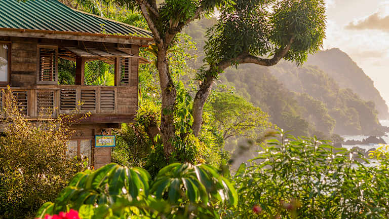 Das Castara Retreats Eco-Resort liegt in einer wunderschönen Bucht und bietet einen atemberaubenden Blick auf das Meer. Es befindet sich auf einem 0,8 ha großen Grundstück mit üppigen tropischen Gärten. Der Strand ist nur 3 Gehminuten entfernt, so dass Sie leicht die Schönheit der Umgebung genießen können. Die Lage des Resorts ist auch ideal für Aktivitäten wie Wandern, Vogelbeobachtung, Tauchen, Schnorcheln und Reiten. Der Flughafen Tobago ist in nur 45 Fahrminuten erreichbar.