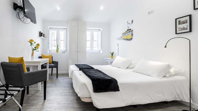 Das Castle Inn Lisbon bietet seinen Gästen eine einzigartige Unterkunft in einem renovierten traditionellen Gebäude im Herzen von Lissabon. Die Apartments sind individuell gestaltet und mit Werken lokaler Künstler dekoriert. Die Lage innerhalb der Burgmauern bietet eine besondere Atmosphäre. WLAN ist kostenlos verfügbar und einige Apartments bieten einen herrlichen Blick auf den Fluss Tejo. Die Unterkunft ist gut ausgestattet mit Klimaanlage, Flachbild-TV und eigener Küchenzeile. In der Nähe finden Sie eine Vielzahl von Restaurants, Cafés und Bars sowie einen Supermarkt. Die gute Anbindung an den öffentlichen Nahverkehr ermöglicht es Ihnen, verschiedene Stadtteile leicht zu erreichen. Das charmante Viertel Alfama mit seinen traditionellen Fado-Musikhäusern ist nur einen kurzen Spaziergang entfernt.