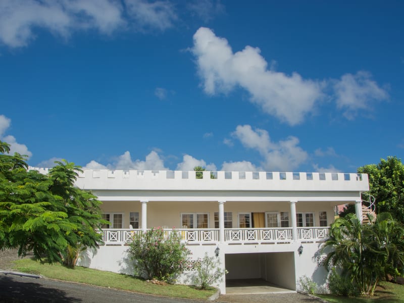 This is a spacious self-contained 2 bedroom villa with 2 en-suite bathrooms, an additional powder room, living/dining room and fully equipped kitchen, a large balcony and an expansive roof deck providing spectacular views of Savannes Bay, Honeymoon Bay and the Atlantic Ocean. There is also a laundry room and car port. This villa enjoys access to a semi-private swimming pool, only a few footsteps away, in the garden on lush, tropical outdoor immaculately kept grounds.