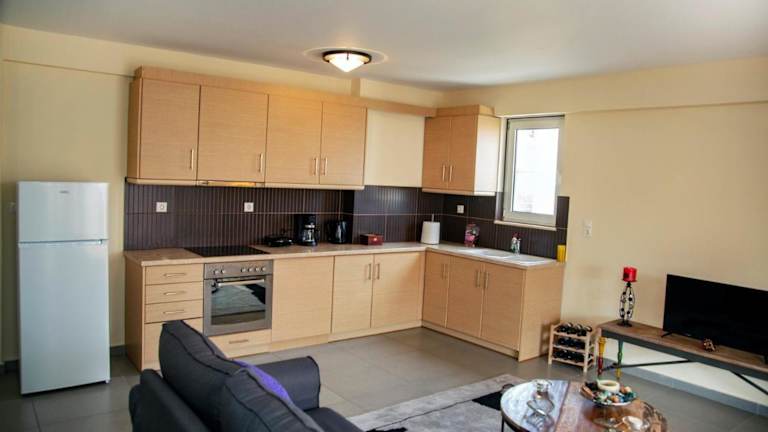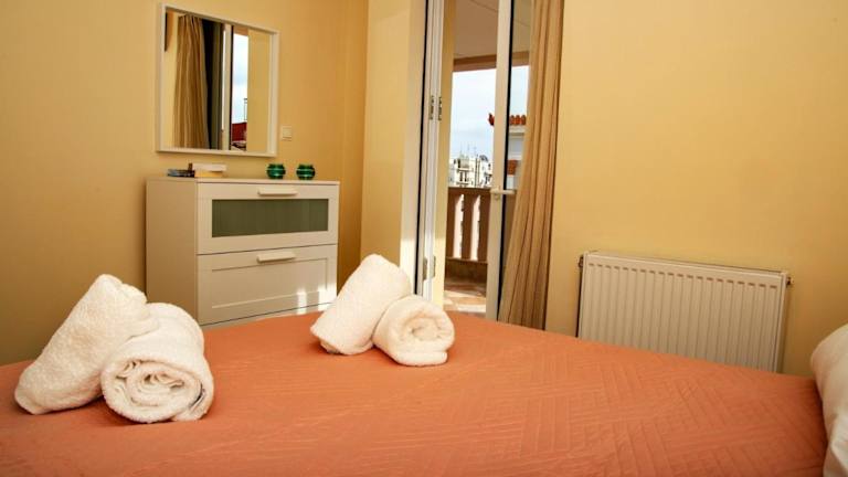 Das klimatisierte Apartment im Catherine's Comfort Apartment No2 bietet alle Annehmlichkeiten, die Sie für einen komfortablen Aufenthalt benötigen. Es verfügt über ein geräumiges Schlafzimmer, ein gemütliches Wohnzimmer und eine voll ausgestattete Küche mit Kühlschrank und Kaffeemaschine. Das Bad ist mit einer Dusche ausgestattet und Handtücher und Bettwäsche werden gestellt. Der Balkon und die Terrasse bieten einen herrlichen Meerblick und laden zum Entspannen ein.