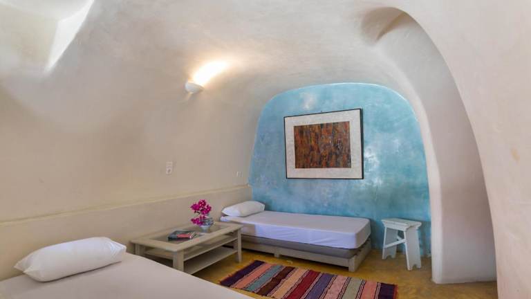 Das Caveland liegt in Karterados, nur 1,6 km vom Archäologischen Museum von Thera entfernt. Die Lage ist ideal, um die Sehenswürdigkeiten der Umgebung zu erkunden. Der Hafen von Santorin ist etwa 8 km entfernt, das antike Thera 9,3 km und die archäologische Stätte Akrotiri 11 km. In der Nähe des Hostels befinden sich auch das prähistorische Museum von Thera, der zentrale Busbahnhof und die orthodoxe Kathedrale.