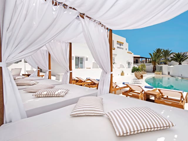Erleben Sie einen unvergesslichen Aufenthalt im Cavo Bianco Boutique Hotel & Spa in Kamari. Das Hotel besticht durch seinen kykladischen Stil, einen schönen Pool und eine Sonnenterrasse. Genießen Sie die traditionelle Küche im hoteleigenen Restaurant und entspannen Sie im Wellnesscenter. Die modernen Zimmer bieten einen Balkon oder eine Terrasse mit herrlichem Ausblick. Das freundliche Personal steht Ihnen jederzeit zur Verfügung und hilft Ihnen gerne bei der Organisation von Ausflügen. Die Lage des Hotels ermöglicht es Ihnen, die archäologische Stätte des antiken Thera und andere Sehenswürdigkeiten in der Umgebung zu erkunden.