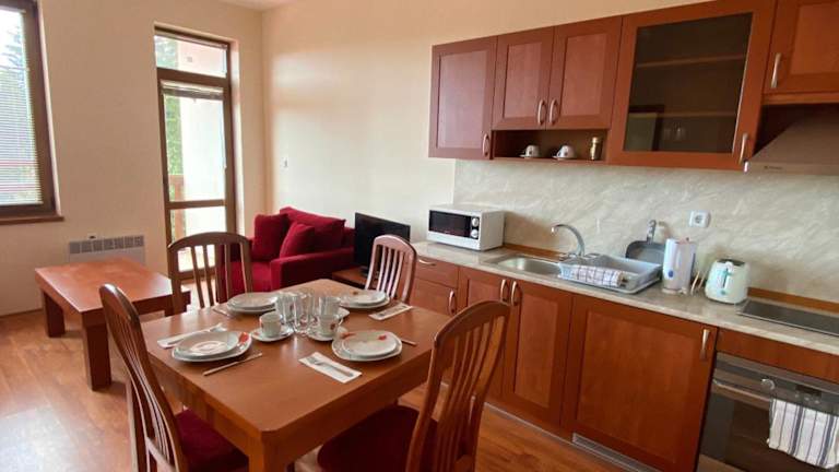 Alle Wohneinheiten sind mit einem Flachbild-TV, einem eigenen Badezimmer mit Badewanne sowie einer voll ausgestatteten Küche ausgestattet.