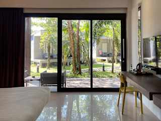 Die Bungalows sind mit einer eigenen Terrasse, Klimaanlage und einem gemütlichen Sitzbereich mit Sofa ausgestattet. Weiterhin verfügen die Unterkünfte über einen Safe und ein eigenes Bad, das mit kostenfreien Pflegeprodukten sowie einer Dusche ausgestattet ist.