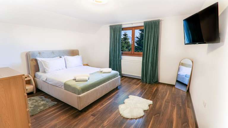 Die Unterkunft befindet sich in der Nähe von Schloss Bran, etwa 1,7 km entfernt. Die Umgebung bietet einen Bergblick und ist umgeben von einer ruhigen Natur. Der Dino Parc ist 13 km entfernt und der Rathausplatz erreicht man nach 29 km. Der nächste Flughafen, der Internationale Flughafen Brașov-Ghimbav, liegt in einer Entfernung von 26 km.