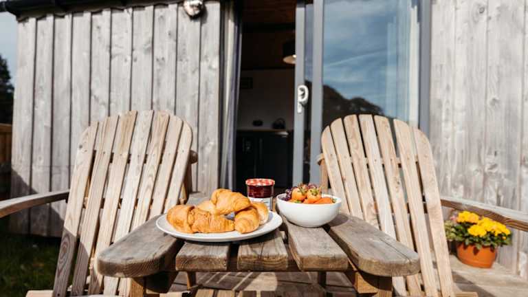 Die Unterkünfte in den Cefn Crib Cabins sind gemütlich eingerichtet und verfügen über einen komfortablen Sitzbereich. Jede Cabin bietet zudem eine private Terrasse mit Meerblick, eine Küchenzeile mit Kühlschrank und Mikrowelle sowie ein eigenes Badezimmer mit Dusche. Hier können Sie sich wie zu Hause fühlen und die schöne Umgebung genießen.