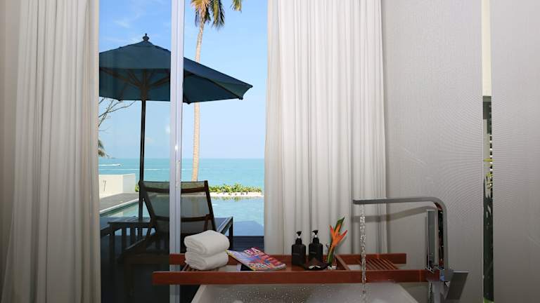 Die Zimmer im Celes BeachFront Resort - Koh Samui sind geräumig und elegant eingerichtet. Jedes Zimmer verfügt über einen eigenen Balkon mit herrlichem Ausblick. Die Zimmer sind klimatisiert und mit Holzböden ausgestattet. Zur Ausstattung gehören ein bequemer Sitzbereich, ein Fernseher zur Unterhaltung und ein Wasserkocher mit Tee- und Kaffeezubehör. Im eigenen Bad finden Sie eine Dusche und hochwertige Pflegeprodukte.