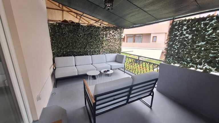 Die Ferienwohnung verfügt über 1 Schlafzimmer, ein Wohnzimmer und eine voll ausgestattete Küche mit Kühlschrank und Wasserkocher. Es beinhaltet ein Badezimmer mit Dusche und Haartrockner. Zur Ausstattung gehören auch Klimaanlage, Balkon und Blick auf den Garten. Handtücher und Bettwäsche werden bereitgestellt.