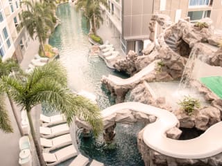 Das Centara Azure Hotel Pattaya bietet einen einfachen Zugang zum Strand (ca. 10 Minuten zu Fuß) und zu großartigen Einkaufs- und Freizeitmöglichkeiten, einschließlich dem Einkaufszentrum Central Festival (2 Kilometer entfernt). Das Hotel ist um einen 73 Meter langen Freiform-Swimmingpool angeordnet, eine entspannende Oase mit kühlem Grün, beruhigenden Wasserfällen, einer Wasserrutsche, Liegestühlen und einer Swim-up-Poolbar. Es gibt auch ein Fitnesscenter mit Blick auf den Pool. Flexibilität in den Raumaufteilungen bedeutet, dass Einzelreisende, Paare und Familien alle gut betreut werden, und Sie werden die Auswahl von Stadt- oder Poolblick genießen. Zu den weiteren Annehmlichkeiten gehören ein Smart-TV und kostenfreies WLAN. Das Hotel beherbergt auch das ganztägig geöffnete Restaurant Atlantis und das Café The Rock neben dem Poolbereich. Der Concierge steht zur Verfügung, um Ausflüge und Freizeitaktivitäten für Gäste jeden Alters zu organisieren. Der internationale Flughafen Suvarnabhumi ist eine 90-minütige Autofahrt entfernt.