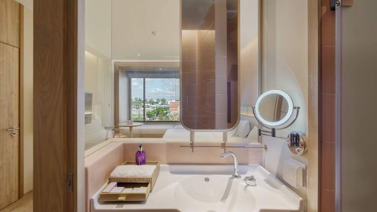Die Zimmer sind mit einer Klimaanlage ausgestattet und bieten ein angenehmes Raumklima. Zur Ausstattung gehören ein Doppelbett, ein Sofabett sowie ein Schreibtisch. Ein Kühlschrank und eine Tee-/Kaffeemaschine stehen den Gästen zur Verfügung. Die Zimmer verfügen zudem über einen Flachbildfernseher, einen Safe, Hausschuhe und kostenfreies WLAN. Die Badezimmer sind mit einer Dusche und einem Haartrockner ausgestattet, während Pflegeartikel und eine Auswahl an Handtüchern bereitgestellt werden. Es sind auch rollstuhlgerechte Zimmer mit einem barrierefreien Badezimmer buchbar.