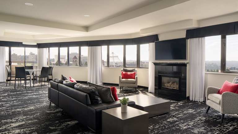 Die Zimmer im Centennial Hotel Spokane sind gemütlich und komfortabel eingerichtet. Jedes Zimmer verfügt über Kabel-TV, Kaffee- und Teezubehör, einen Kühlschrank und eine Mikrowelle. Es gibt auch einen separaten Sitzbereich und einen Schreibtisch, um Ihren Aufenthalt so angenehm wie möglich zu gestalten. Kostenloses WLAN ist in allen Zimmern verfügbar.