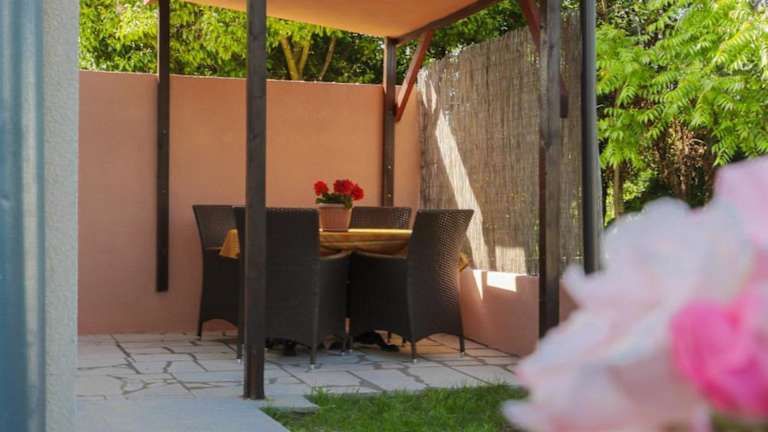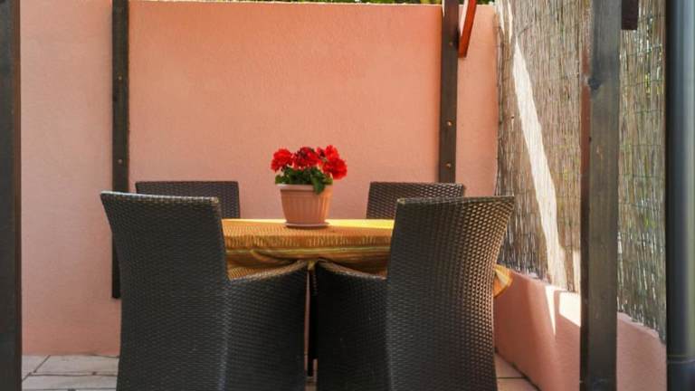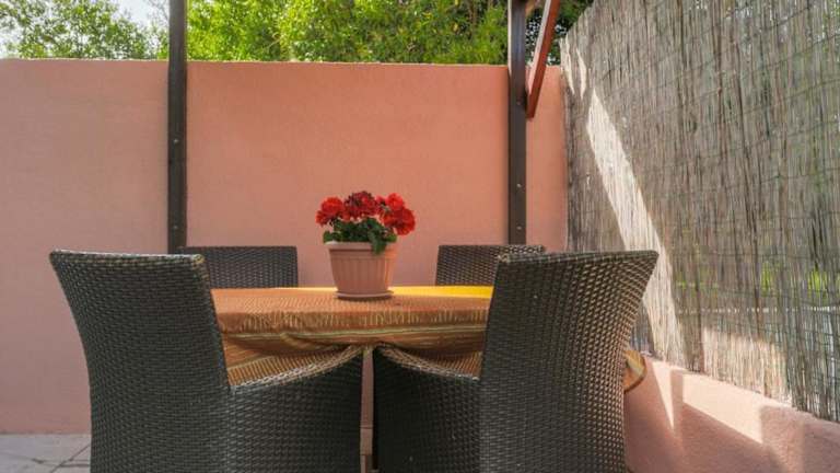 Die Ferienwohnung ist klimatisiert und umfasst ein Schlafzimmer, ein Wohnzimmer sowie eine voll ausgestattete Küche mit Kühlschrank und Kaffeemaschine. Das Badezimmer ist mit einer Dusche und kostenlosen Pflegeprodukten ausgestattet. Zudem gibt es eine Veranda/Patio mit Gartenblick.