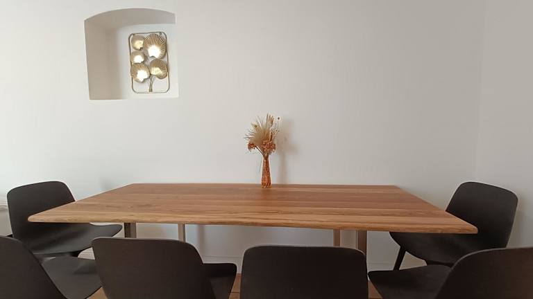 Die Ferienwohnung verfügt über zwei Schlafzimmer, eine voll ausgestattete Küche mit Kühlschrank und Ofen sowie ein Badezimmer mit Dusche und kostenlosen Pflegeprodukten. Handtücher und Bettwäsche werden bereitgestellt, und die Wäsche erfolgt nach den Richtlinien der örtlichen Behörden.