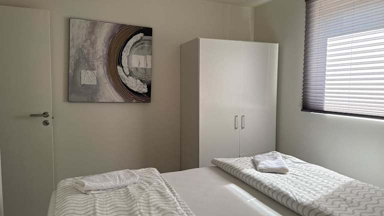 Die Wohnung verfügt über Klimaanlage und besteht aus zwei separaten Schlafzimmern sowie einer voll ausgestatteten Küche. Es sind Nichtraucherzimmer vorhanden und die Unterkunft bietet auch Familienzimmer. Privater Check-in und Check-out sind ebenfalls verfügbar.