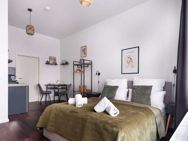 Die Unterkunft Central Apartment in Heart of Berlin liegt in Berlin, 2,7 km von der East Side Gallery und 3,7 km vom U-Bahnhof Alexanderplatz entfernt. Der Berliner Dom befindet sich 4,9 km entfernt, während der Flughafen Berlin Brandenburg 25 km von der Unterkunft entfernt ist.