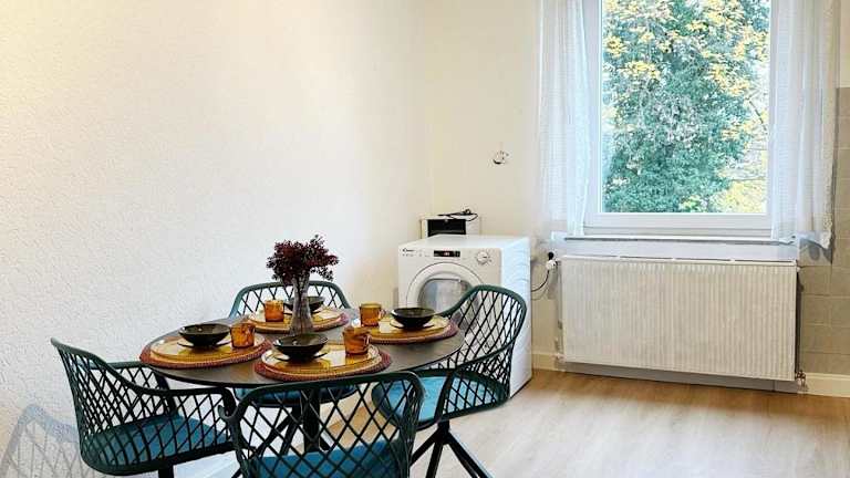 Die Unterkunft 2 Schlafzimmer WaschenSpülmaschine bietet eine Ferienwohnung mit Gartenblick und kostenlosem WLAN. Die Wohnung beherbergt zwei Schlafzimmer und ein Wohnzimmer, das mit einem Flachbild-TV ausgestattet ist. Eine voll ausgestattete Küche ist ebenfalls vorhanden, um den Aufenthalt komfortabel zu gestalten.