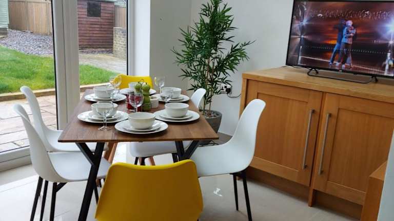 Das Central Ashford Stay bietet Übernachtungsmöglichkeiten in einem Ferienhaus in Kent und heißt sowohl Handwerker als auch Familien willkommen. Gästen stehen kostenloses WLAN und ein kostenloser Privatparkplatz zur Verfügung. Ein Garten mit Grillmöglichkeiten und eine Veranda sowie eine Terrasse vervollständigen das Angebot. Es handelt sich um eine Nichtraucherunterkunft, in der Haustiere auf Anfrage erlaubt sind.