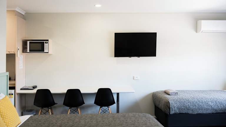 Die Zimmer verfügen über verschiedene Annehmlichkeiten wie Tee- und Kaffeezubehör, eine Mikrowelle, einen Toaster, Geschirr und Besteck sowie einen Kühlschrank. Jedes Zimmer hat ein eigenes Bad mit Dusche und Haartrockner.