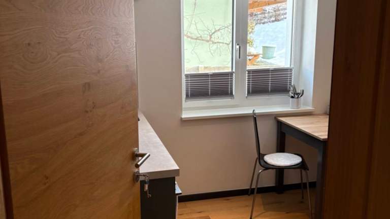 In dem Privatzimmer werden Handtücher und Bettwäsche bereitgestellt.