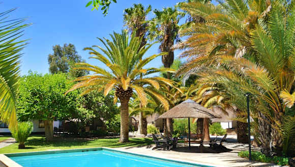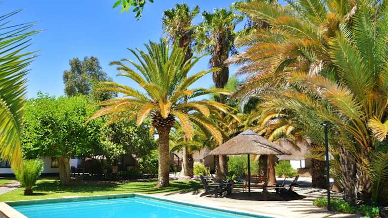 Das Central Hotel Omaruru in Omaruru bietet einen angenehmen Aufenthalt für Reisende, die eine komfortable Unterkunft mit einem Außenpool und kostenfreiem WLAN suchen. Das Hotel bietet ein Restaurant mit einer vielfältigen Küche, darunter Steakhouse, deutsche und regionale Gerichte. Die Zimmer sind klimatisiert und verfügen über Annehmlichkeiten wie einen Flachbild-TV und eine Terrasse mit Blick auf den Pool. Ein englisches/irisches oder amerikanisches Frühstück wird angeboten und auf Anfrage sind vegetarische, milchfreie und koschere Speisen erhältlich. Das Hotel bietet auch eine hauseigene Bar und einen Businesscenter.