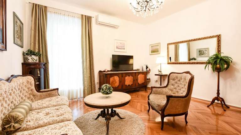 Das Central Palace Apartment befindet sich in der Altstadt von Zadar, in der Nähe der Kirche des Heiligen Donat und des Römischen Forums. Der Sandstrand von Kolovare ist nur 1 km entfernt. In der unmittelbaren Umgebung des Apartments finden Sie mehrere Bars, Restaurants, ein Lebensmittelgeschäft und einen Marktplatz. Die Promenade Riva und die Hauptstraße Kalelarga sind nur etwa 50 m entfernt. Die berühmte Meeresorgel und das Lichtspielmonument sind ebenfalls in unmittelbarer Nähe. Der Fährhafen ist 300 m entfernt, während der Busbahnhof und der Bahnhof 2,5 km entfernt liegen. Der Flughafen Zadar ist in 13 km erreichbar.