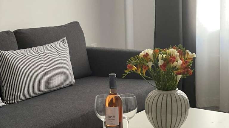 Central Suites Aegina 1 bietet Übernachtungsmöglichkeiten in einer gut ausgestatteten Ferienwohnung. Die Unterkunft verfügt über kostenfreies WLAN und einen Flachbild-TV für den Komfort der Gäste.