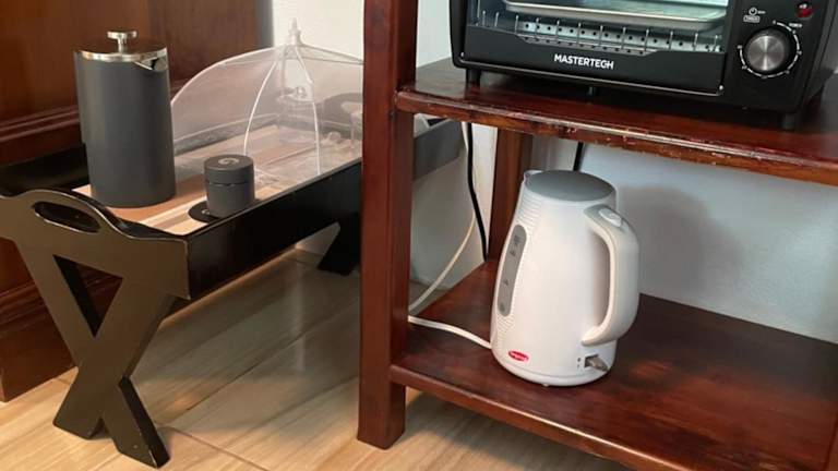 Das Privatzimmer ist klimatisiert und verfügt über eine Küchenzeile, ausgestattet mit Kühlschrank, Toaster und Wasserkocher. Handtücher und Bettwäsche werden ebenfalls bereitgestellt.