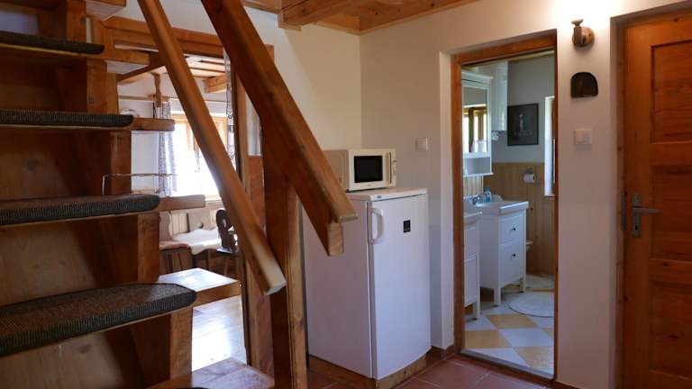 Das Ferienhaus im Cesta z mesta na Huty bietet 2 Schlafzimmer und ein geräumiges Wohnzimmer, in dem Sie sich wie zu Hause fühlen können. Ein Flachbild-TV sorgt für Unterhaltung, während eine voll ausgestattete Küche mit Kühlschrank und Toaster Ihnen die Möglichkeit gibt, Ihre eigenen Mahlzeiten zuzubereiten. Das Ferienhaus verfügt zudem über ein Badezimmer mit Dusche und stellt Handtücher und Bettwäsche zur Verfügung.