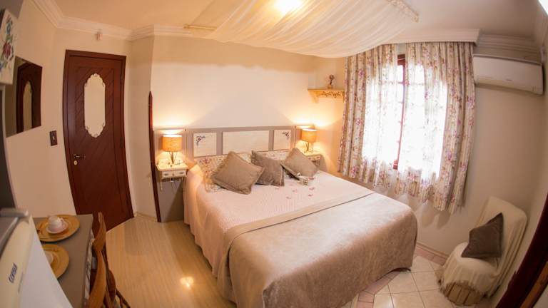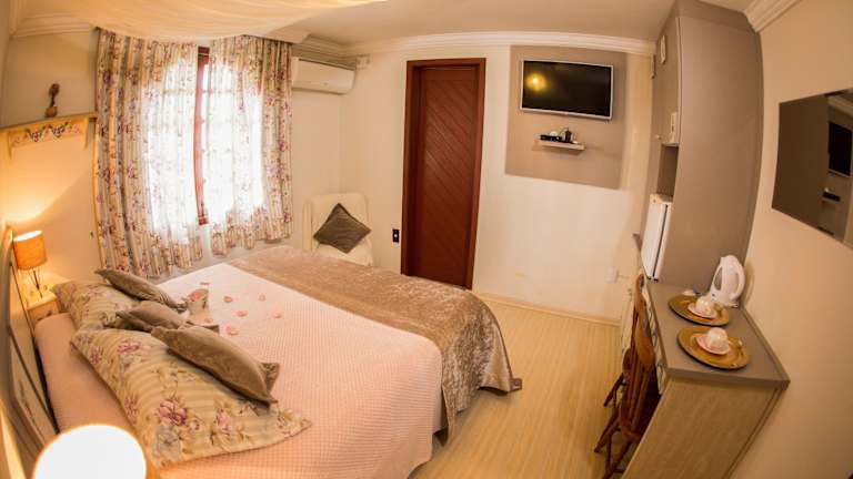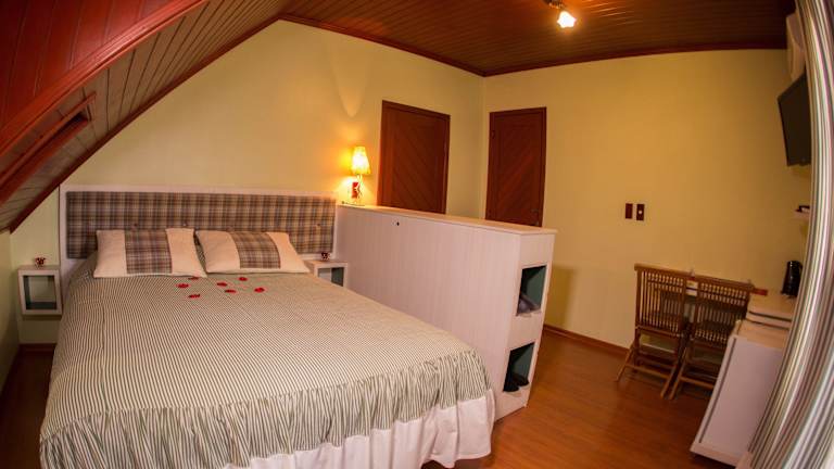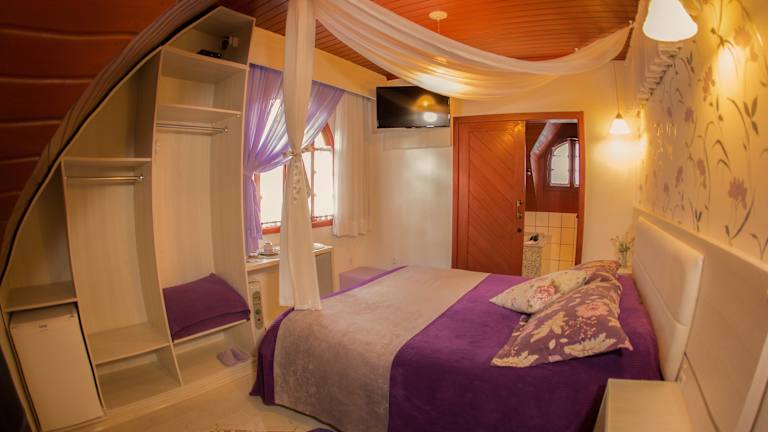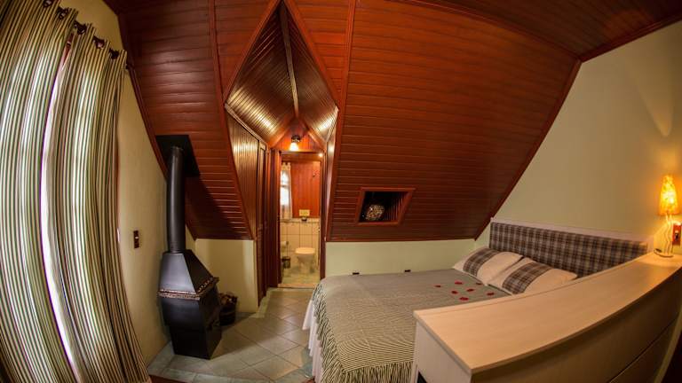 Im Hotel Chalé Alto da Serra - Pousada & Wellness Spa erwarten Sie individuell gestaltete Zimmer, die eine gemütliche und einladende Atmosphäre bieten. Jedes Zimmer verfügt über Annehmlichkeiten wie eine Minibar, einen TV, einen DVD-Player, eine Heizdecke und ein eigenes Bad. Die beheizten Zimmer sind ideal, um sich nach einem ereignisreichen Tag zu entspannen, und die Whirlpool-Badewanne bietet zusätzlichen Komfort und Luxus. Kostenloses WLAN ist ebenfalls verfügbar, um mit der Außenwelt in Verbindung zu bleiben.