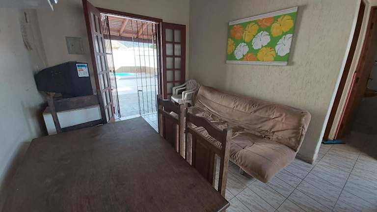 Das Ferienhaus 603 Claudia Maranduba 1dor verfügt über ein separates Schlafzimmer, ein Badezimmer und ein gemütliches Wohnzimmer. Es ist ideal für Paare oder kleine Gruppen, die einen erholsamen Urlaub in Ubatuba verbringen möchten. Das Ferienhaus ist gut ausgestattet und verfügt über einen Balkon, auf dem Sie den Blick auf den Garten und die Umgebung genießen können. Ein TV ist ebenfalls vorhanden.