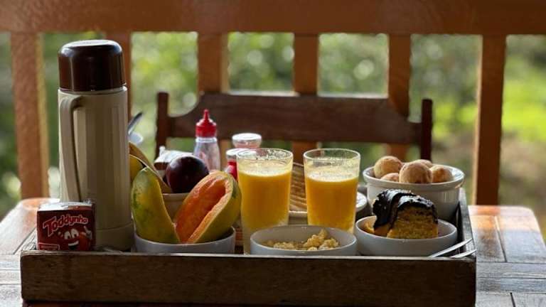 Starten Sie Ihren Tag im Chalés Lavras de Minas - Brasil mit einem köstlichen kontinentalen Frühstück. Genießen Sie eine Auswahl an Speisen und Getränken, um gestärkt in den Tag zu starten.