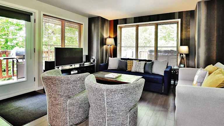 Das Chalet 03 Chemin Blanc by Les Chalets Alpins bietet eine ideale Unterkunft für Reisende, die Stoneham erkunden möchten. Mit Zugang zu einem Whirlpool und kostenfreiem WLAN bietet das Chalet eine komfortable und entspannte Atmosphäre. Die Unterkunft verfügt über 5 Schlafzimmer, eine voll ausgestattete Küche und ein geräumiges Wohnzimmer mit Flachbild-TV. Die Nähe zu Sehenswürdigkeiten wie der Basilika Notre Dame de Quebec und dem Vieux Quebec Old Quebec macht das Chalet zu einem perfekten Ausgangspunkt, um die Umgebung zu erkunden.