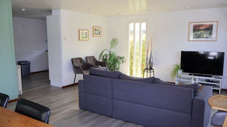 Das Chalet bietet zwei Schlafzimmer, ein Wohnzimmer mit Flachbild-TV und eine gut ausgestattete Küche mit Kühlschrank und Geschirrspüler. Es gibt zudem ein Badezimmer mit Dusche sowie eine Bereitstellung von Handtüchern und Bettwäsche.