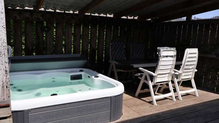 Chalet 30 met jacuzzi bietet komfortable Übernachtungsmöglichkeiten mit einer Terrasse und Gartenblick. Die Unterkunft umfasst einen Garten, einen Fahrradverleih, ein Restaurant und eine Bar. Außerdem steht ein kostenloser Privatparkplatz zur Verfügung.