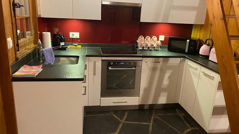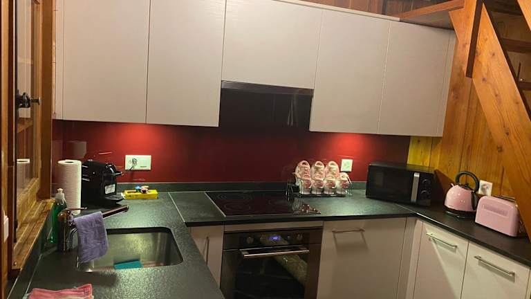 Das Chalet verfügt über ein Schlafzimmer und ein Wohnzimmer sowie eine gut ausgestattete Küche mit Kühlschrank und Ofen. Es gibt zwei Badezimmer mit Dusche. Die Zimmer sind mit einem Flachbild-TV ausgestattet. Handtücher und Bettwäsche werden bereitgestellt. Die Unterkunft bietet außerdem eine Sonnenterrasse sowie Gartenmöbel.