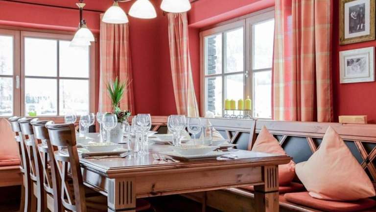 Im Chalet Alpinum können Sie Ihre eigenen Mahlzeiten zubereiten und im Essbereich oder auf der Terrasse genießen. Es gibt auch eine Bar, in der Sie sich entspannen und erfrischende Getränke genießen können.