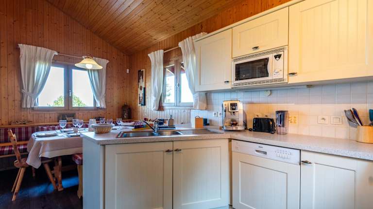 Es stehen Möglichkeiten zur Selbstverpflegung durch die voll ausgestattete Küche zur Verfügung. Für kulinarische Erlebnisse in der Umgebung wird auf das Café vor Ort hingewiesen.