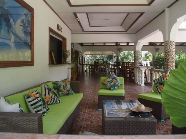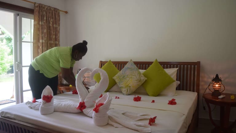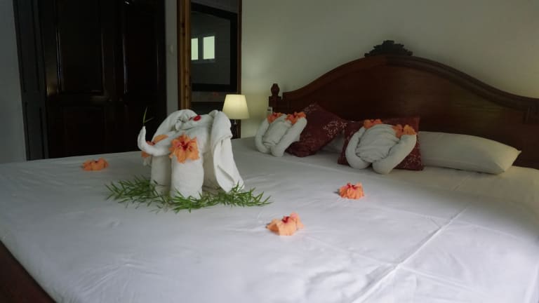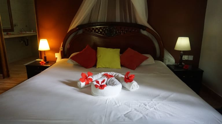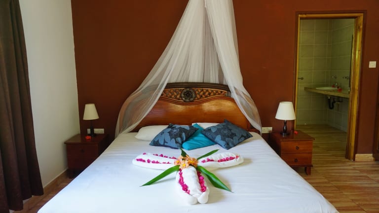Das Chalet Bamboo Vert ist eine charmante Pension in La Digue, die mit ihrem schönen Garten, der gemütlichen Terrasse und dem hauseigenen Restaurant und der Bar begeistert. Die klimatisierten Zimmer bieten einen angenehmen Aufenthalt und kostenloses WLAN. Jedes Zimmer verfügt zudem über einen Balkon und ein eigenes Badezimmer mit Dusche und kostenlosen Pflegeprodukten. Ein kontinentales Frühstück wird täglich serviert und Fahrräder können vor Ort ausgeliehen werden, um die Umgebung zu erkunden. Die Pension befindet sich in der Nähe beliebter Sehenswürdigkeiten wie den Stränden Anse La Reunion und Anse Severe sowie dem Yachthafen von La Digue.