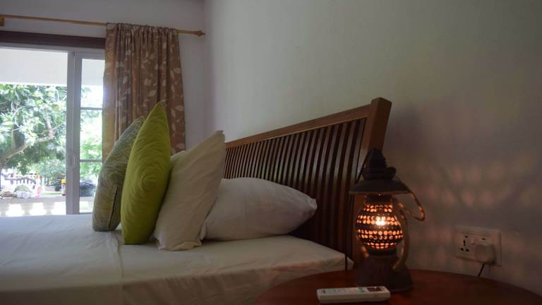 Die klimatisierten Zimmer im Chalet Bamboo Vert bieten einen gemütlichen Rückzugsort mit Blick auf den Garten. Jedes Zimmer ist mit einem Kleiderschrank, kostenlosem WLAN und einem eigenen Balkon ausgestattet. Das Badezimmer verfügt über eine Dusche, kostenlose Pflegeprodukte und einen Haartrockner. Ein Safe ist ebenfalls vorhanden.